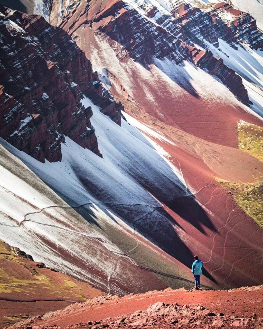 Take in the incredible 360° panoramic views of Rainbow Mountain, the nearby Ausangate Glacier, and (optionally) begin a short hike toward the Red Valley, known for its surreal Martian-like terrain.